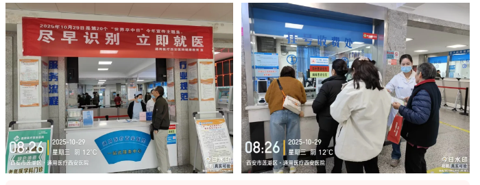 2025年10月29日是第20个世界卒中日。为贯彻落实《健康中国行动(2019-2030年)》《健康中国行动---心脑血管疾病防治行动方案》等相关文件精神要求,积极倡导科学运动,推进卒中早期预防、诊治和康复工作有效开展。为倡导健康生活方式,进一步普及健康生活知识,提高广大群众对脑卒中的认知,了解脑卒中的危害,积极关注中年人的中风风险。今年宣传主题是“尽早识别 立即就医”。我院围绕的主题开展了世界卒中日宣传活动。